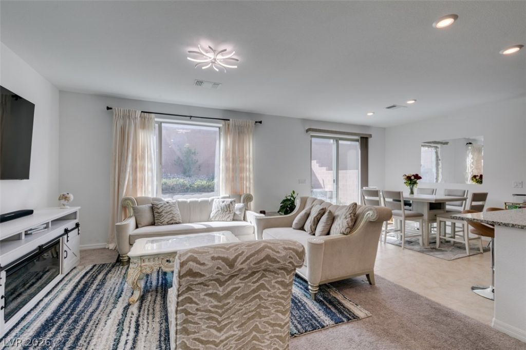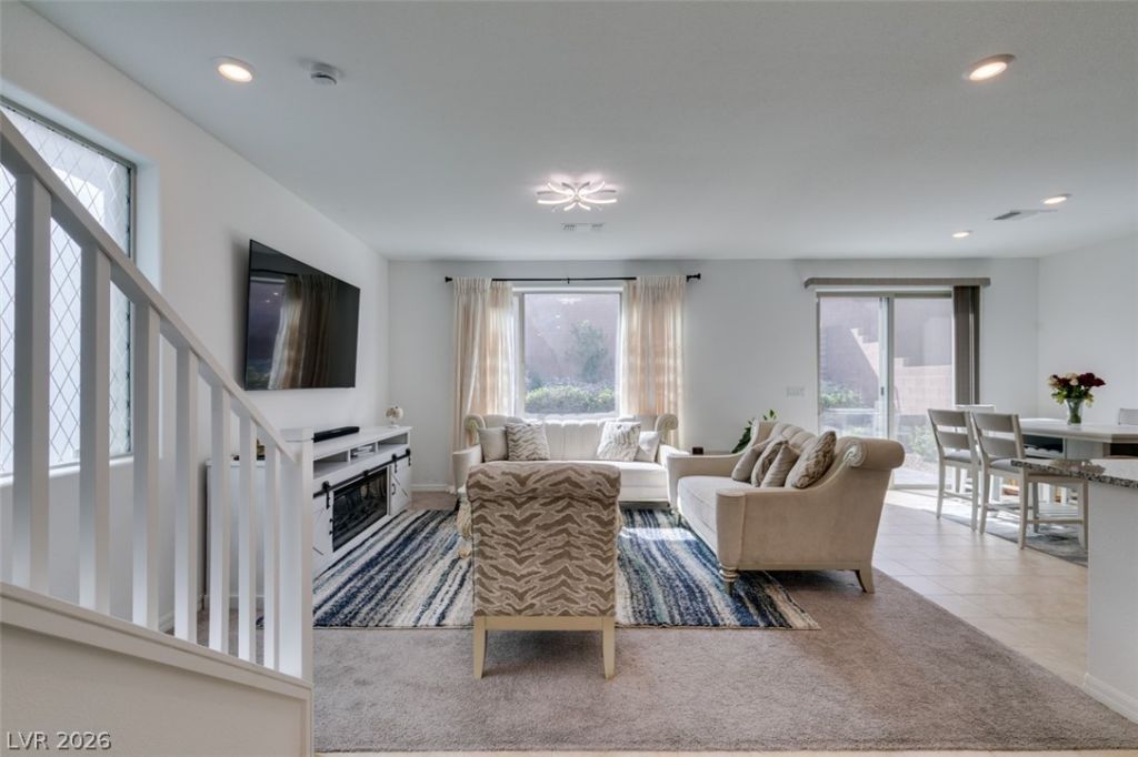 This 2023 Pulte Mesquite Plan in southwest Las Vegas offers modern design and thoughtful upgrades throughout. The first-floor bedroom and 1/2 bath are perfect for guests or multi-gen living. The downstairs great room and kitchen you'll find an open layout with plenty of room to entertain, designer cabinets, quartz countertops, and upgraded flooring throughout. A rare blend of style and functionality in a prime location. 15 Minutes from the airport, Strip and 3 minutes to shopping.