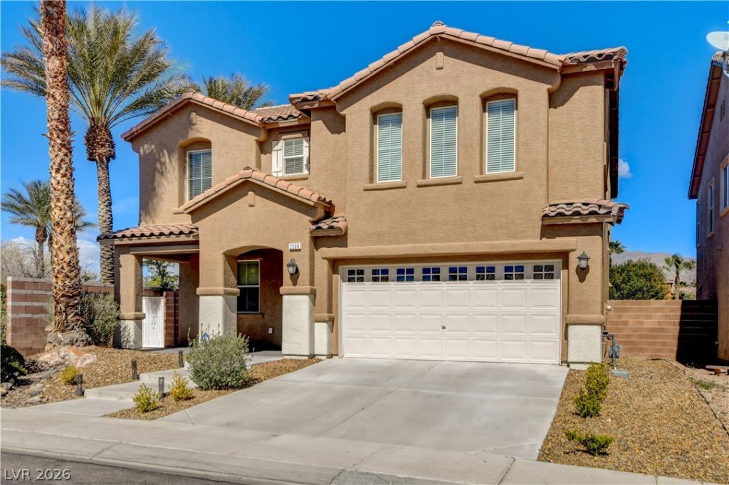 Beautiful one-owner home built in 2005 located in the desirable Aliante Master Planned Community w/ stunning mountain views. This spacious 2-story home offers 2,678 sq. ft. with over $110,000 in original builder upgrades. The home features 9 ft ceilings on the first floor, large living room, family room. The highly upgraded kitchen include a functional island w/ extended custom cabinetry and 36-inch upper cabinets, full backsplash, and plenty of storage. The first floor showcases 18-inch diagonal cut tile throughout. Beautiful staircase highlighted by a refinished wood banister. New carpet thru out second floor. Enjoy indoor-outdoor living with 8 ft. tall French doors leading to a beautifully finished backyard. Upstairs includes 4 bedrooms that are oversized, the primary suite includes a private balcony overlooking the backyard, creating a peaceful retreat. Fresh interior and exterior paint. Finished garage provides storage & insulated door.