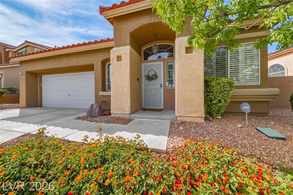 Welcome to this beautifully maintained SINGLE-STORY home in the Summerlin Trails, showcasing true pride of ownership. A light, bright & airy home featuring 3 bedrooms & 2 baths, open floor plan w/large living room w/shutters, & a custom built-in bookcase. The kitchen is a chef's delight, offering ample counter space, sparkling granite countertops, an undermount sink, raised-panel cabinetry, stainless steel appliances, double oven, cooktop & a walk-in pantry. Cozy fireplace in the large family room, which offers direct access to a charming backyard retreat featuring lush scenery, mature landscaping, & incredible privacy. Home includes a secluded primary suite w/a generous walk-in closet & a large bathroom w/an enclosed shower. Laminate flooring in all bedrooms w/ceiling fans. 2-car garage w/extra refrigerator. Located just minutes from top-tier Summerlin amenities, walking trails, and premier shopping/dining. Don't miss this opportunity!