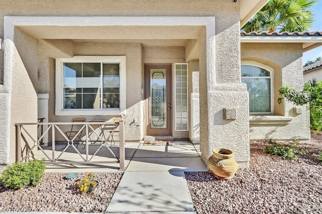 OPEN HOUSE THIS SATURDAY 4/25- 11AM-2PM. Move-in ready, upgraded 4 bed, 2 bath single-story home in the prestigious Seven Hills community, ideally located near scenic trails and parks. This thoughtfully designed home offers an open, light-filled layout with refined finishes, upgraded flooring, and two striking stone fireplaces. The chef's kitchen showcases one-of-a-kind quartzite countertops, a brand-new stainless steel dishwasher, and all appliances included. Spacious laundry room with sink adds convenience. The primary suite features a fully remodeled spa-inspired bath with walk-in shower and generous closet space. Private backyard retreat with covered patio, low-maintenance turf, lush landscaping, mature palm trees, and herb garden?perfect for relaxing or entertaining. Single HOA.