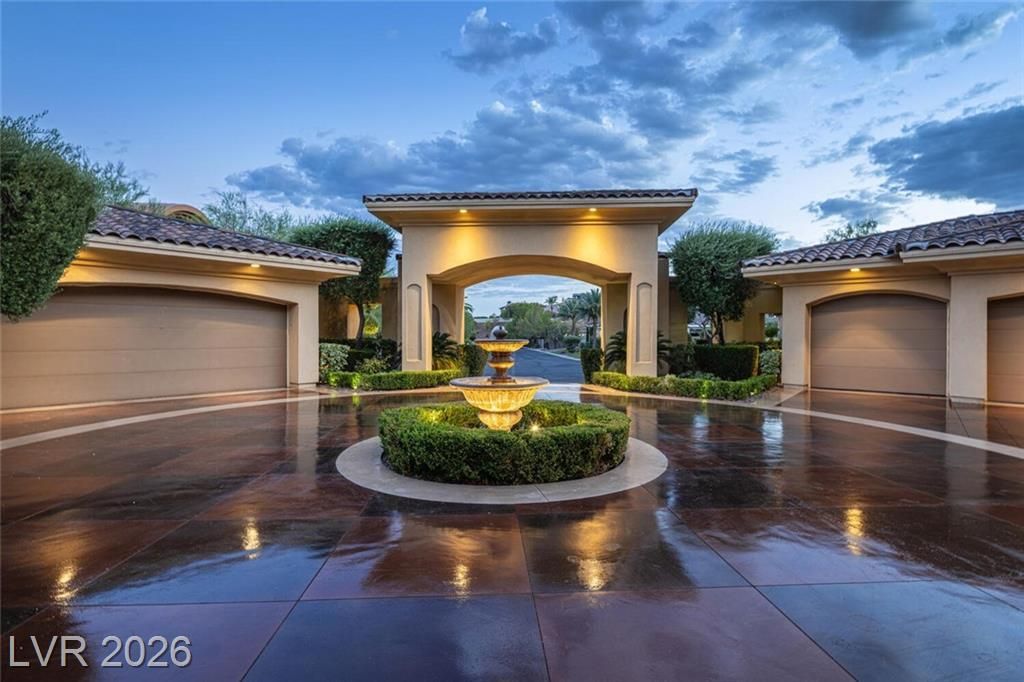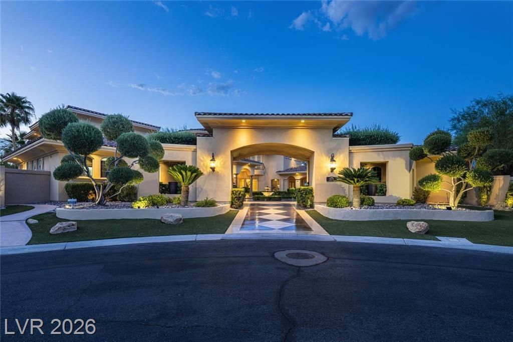 Located in the exclusive guard gated enclave of Spanish Hills Estates, this custom Tuscan inspired estate sits at the end of a private cul-de-sac with unmatched curb appeal and panoramic views of the Las Vegas Strip & surrounding Sierra Nevada Mountains.Spanning 7,628 sq.ft., this Mediterranean Masterpiece features 5 ensuite bedrooms, 6 baths, a private casita, executive office, state-of-the-art theater and media/game room complete with wet bar! The Chef inspired kitchen anchors the open living spaces, while a 7 car-climate-controlled garage with lifts is an absolute DREAM for collectors! Lush grounds, frame this private oasis, enhanced by a gorgeous motor court, sprawling pool, waterfall, spa, inviting chandelier lit gazebo, unique one-of-a-kind fire features & retreat style spaces. This estate embodies all that is timeless & elegant coupled with serene living & exclusivity in one of Las Vegas' most coveted communities! Looking forward to showcasing it to you and your special clients!