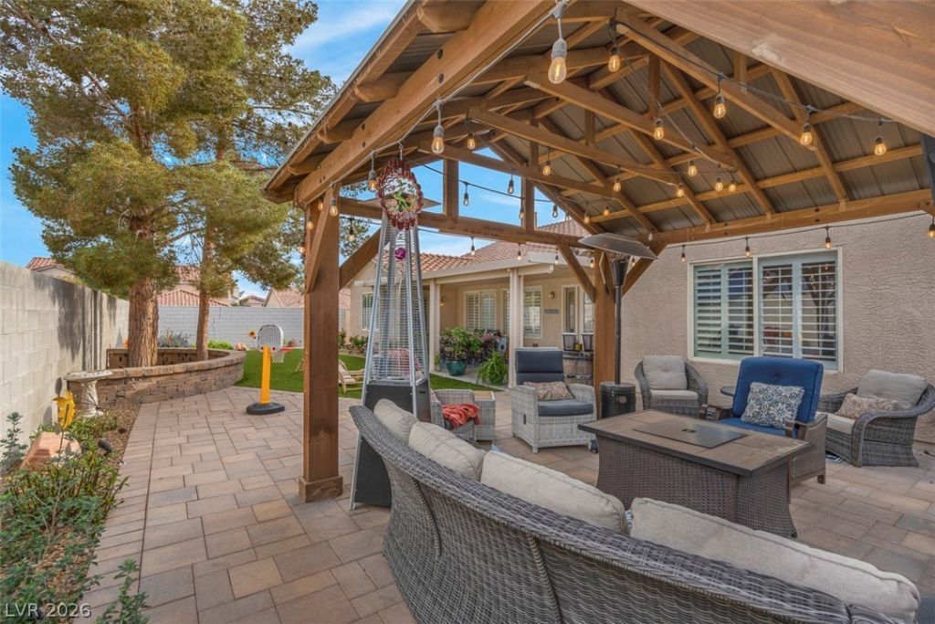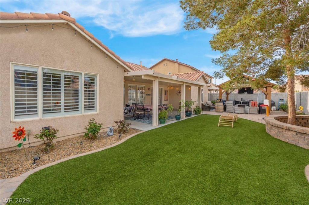 Beautifully remodeled and filled with upgrades, this stunning XL corner-lot home truly reflects pride of ownership. Vaulted ceilings and abundant natural light create an open, airy feel, while custom shutters and new flooring throughout the main living areas add style and comfort. The kitchen features newer appliances (1?2 yrs old) extended counterspace, outlets above cabinets for addt'l lighting and opens to a welcoming family room with built-in storage with a wine rack?perfect for entertaining. The spacious primary suite includes a walk-in closet with custom built-ins, and the bathrooms have been tastefully remodeled. Step outside to a gorgeous, fully redesigned backyard oasis complete with a pergola and covered patio?ideal for relaxing or hosting gatherings. Conveniently located near beautiful parks within walking distance and just minutes from shopping, the 215 freeway, and Nellis AFB. A truly loved and meticulously cared-for home that shows at every turn-making it a must-see!