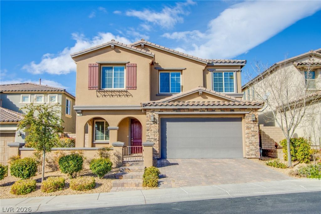 Situated in the heart of Summerlin, community parks, jogging trails, shopping, retail, dining, and the most incredible views of stunning Red Rock Canyon. This gated-community beauty has newer carpet, and features 4 bedrooms + a HUGE loft, 4 full bathrooms, a 3-car tandem garage and massive storage closet, a gated courtyard with pavers, pavers in driveway, 16x16 ceramic tile flooring, separate laundry room w/sink and cabinets for storage. Newer washer/dryer and fridge! Granite countertops, SS appliances, double-ovens, huge breakfast bar at the island with cabinets, custom pull-out shelves and a butler pantry with wine racks. Open & airy primary suite with a custom walk-in closet & massive balcony w/gorgeous mountain views! The loft is AMAZING! Extra storage room in the 3-car tandem garage! Tons of space in this beauty! Minutes from Summerlin's best dining & attractions, including the Vegas Golden Knights practice facility, the LV Ballpark and Paseos Park is less than 1/4 mile away!